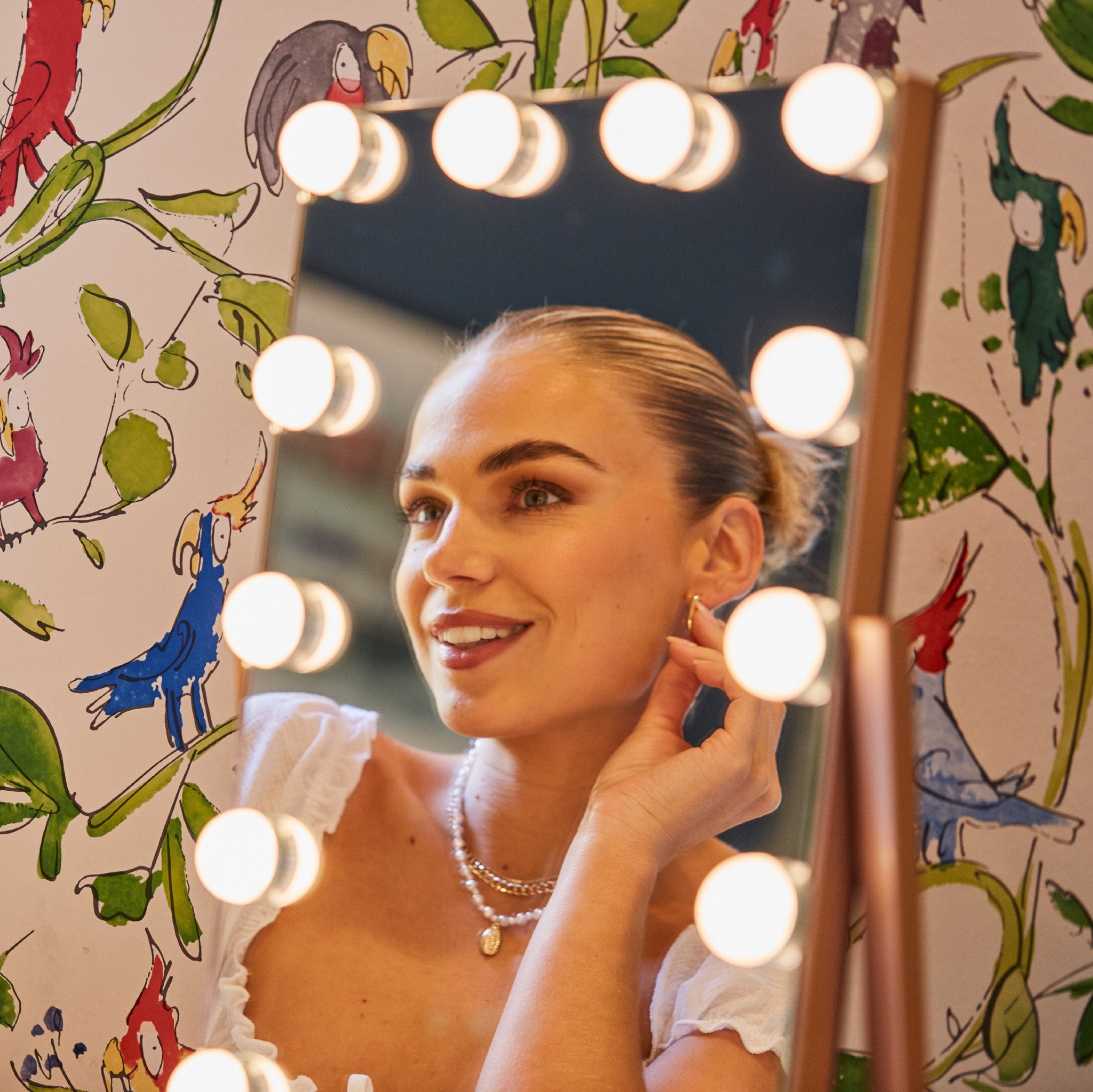 The ideal Hollywood mirror for your dressing table or when travelling. Roxy's tilting design makes it a flexible companion.