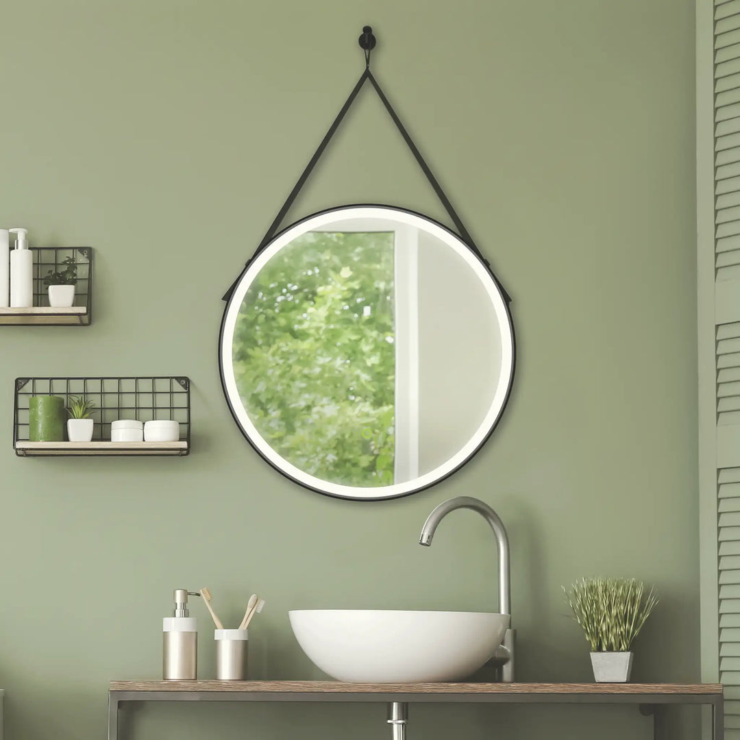 Ensuring crystal clear reflections, the Belt LED Illuminated Black Bathroom Mirror will be a unique focal point. The decorative hanging belt and unique circular design gives any bathroom a stylish edge. Complete with integrated demister as well as cool, daylight and warm lighting options, the Belt is a must-have in modern contemporary spaces.