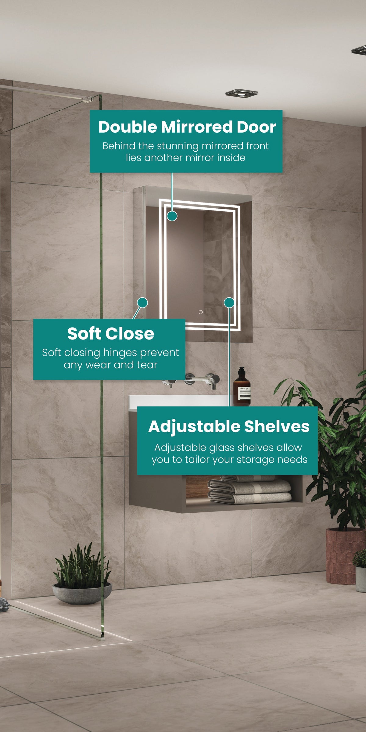 Behind the illuminated front lies practicality. Adjustable glass shelves allow you to tailor your storage. A UK standard shaver socket is located inside the unit at the top to power shavers and toothbrushes.