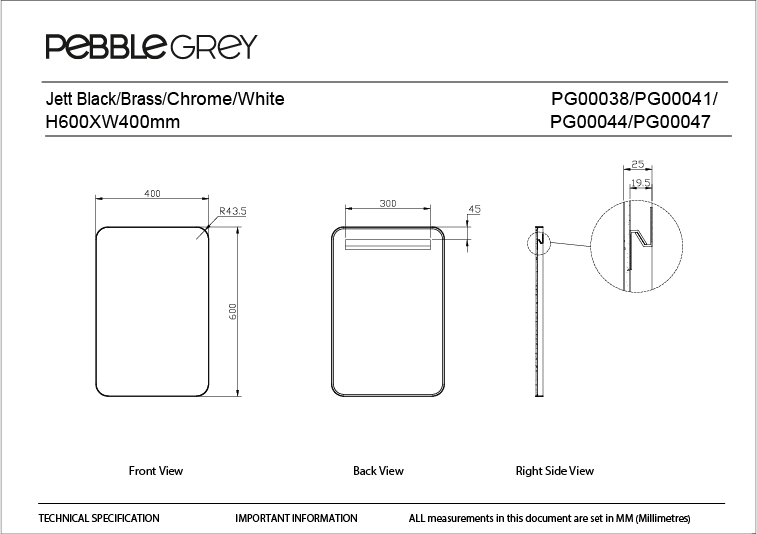 Inside our packaging, there is a printed installation guide showing you how to install your mirror. This includes contact information for our UK support centre who are here to assist you both before and after your purchase. Additionally, the mirror will come with screws and wall plugs (these are for traditional brick and mortar, not plasterboard).