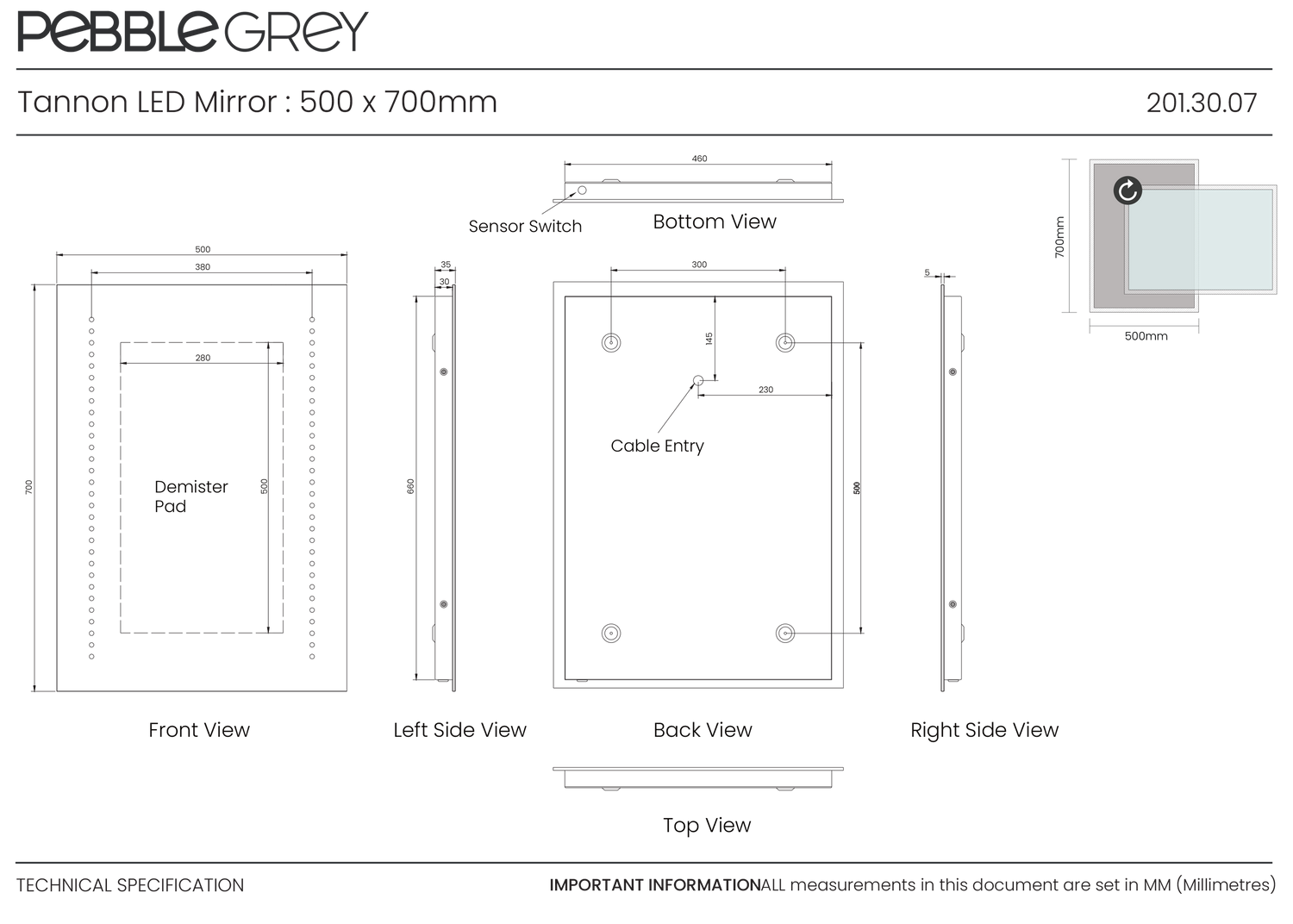 The Tannon is our classic LED illuminated mirror. It's box mount installation delivers timeless, clean edges, while the twin rows of LEDs glow cool white from the glass surface.