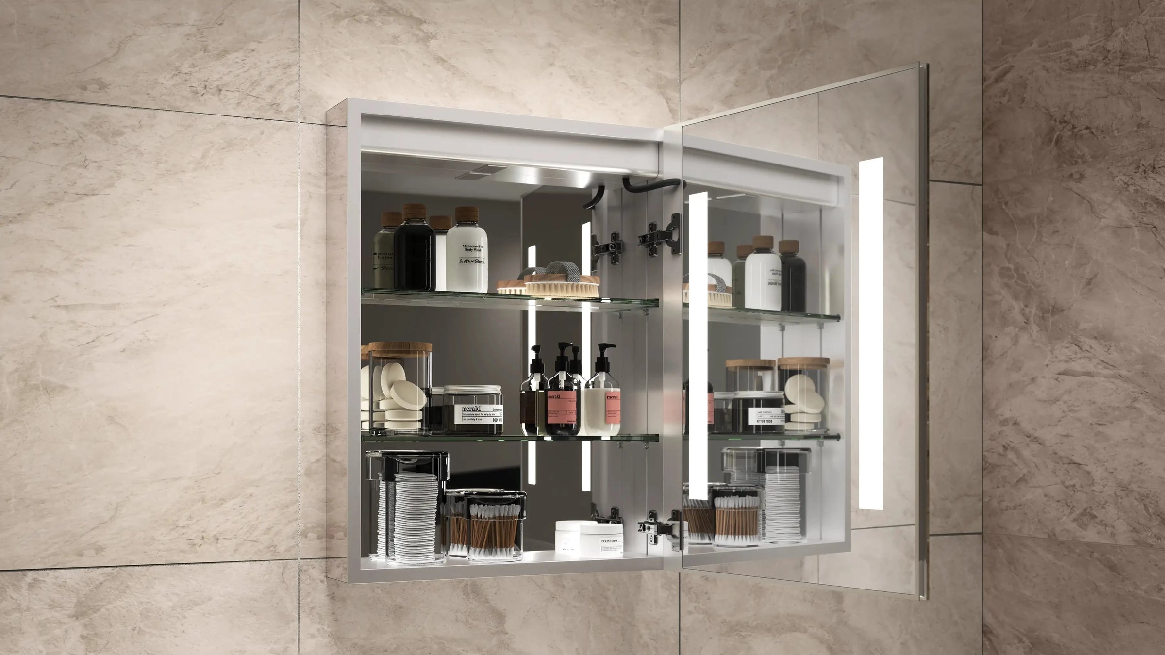 Featuring intuitive touch control and dual sided door lighting, the Linden will brighten your bathroom and enhance your routine.