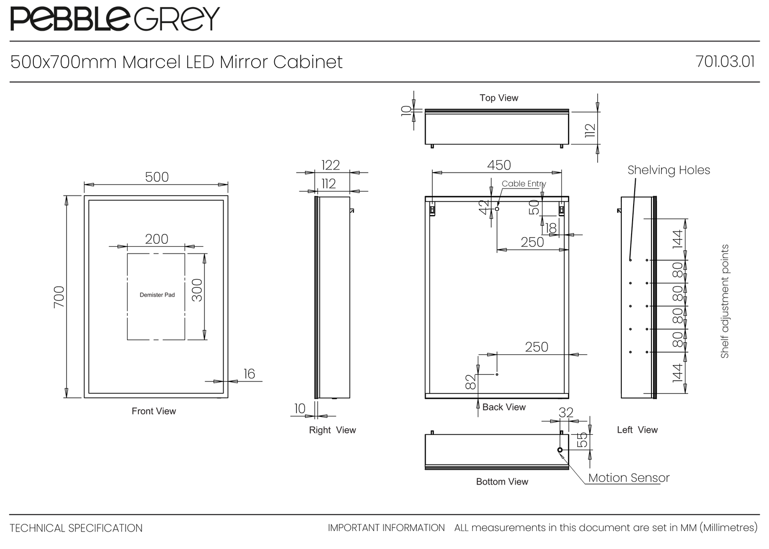 The motion sensor is discreetly featured on the underside of the cabinet on the right-hand side. When the door is lit, an energy efficient demisting pad is automatically activated to keep the mirror fog-free.