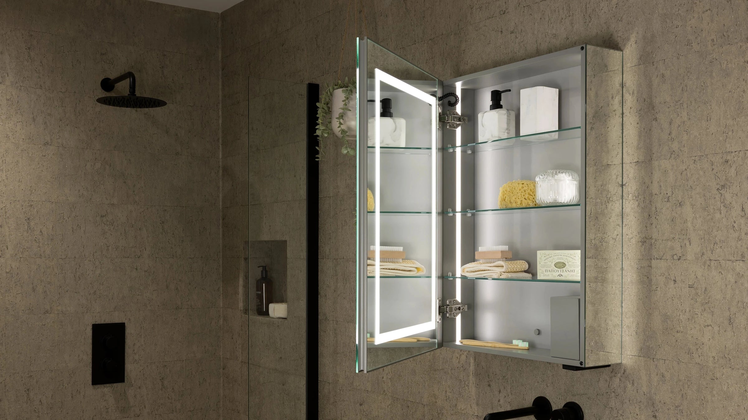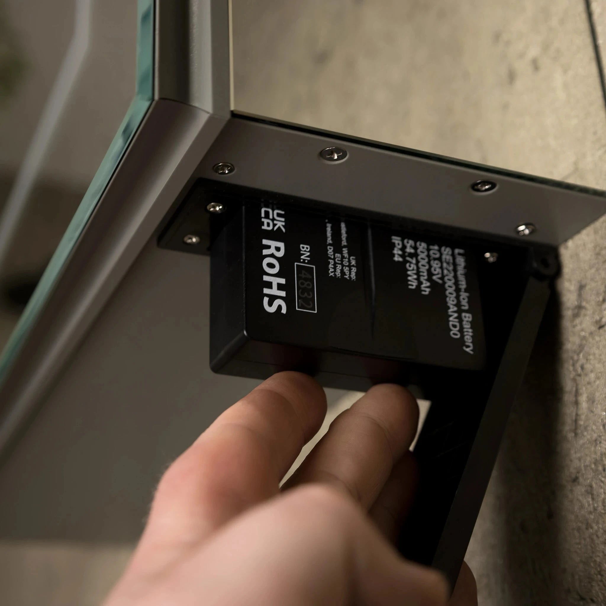 Lithium-Ion battery Mirrors are easy to install with no wires to worry about. The Vista is great for retrofit options, making them perfect for rental properties. Unlike other battery-powered cabinets that can be fiddly to replace, the Vista features a rechargeable lithium-ion power unit that's quick and easy to install, remove and charge. This mirror lasts up to 3 months on a single charge, with no dimming or loss of illumination. It's cost effective, at around 7p per charge vs up to £5 for a packet of AA batteries.