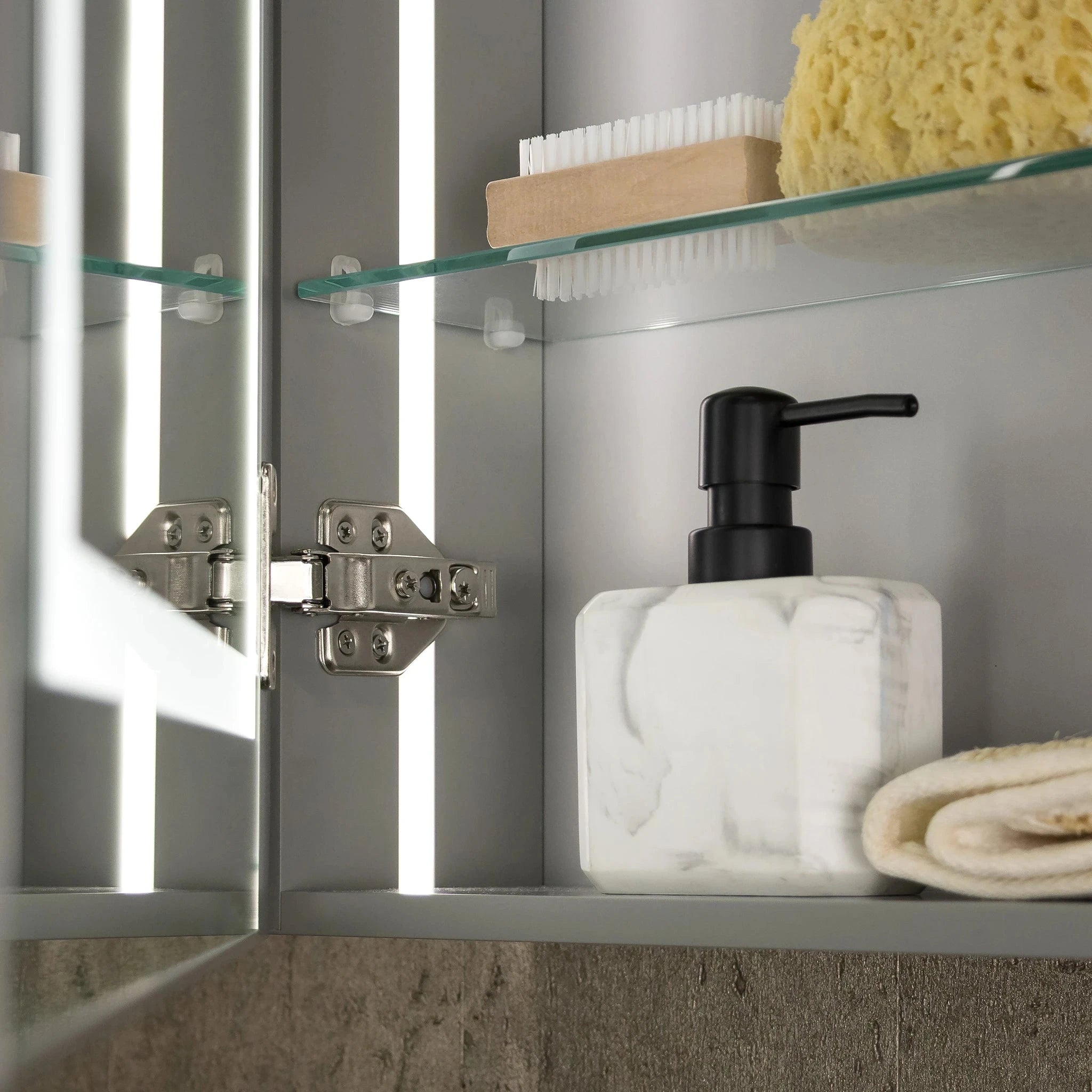 Inset into the mirror glass, the LEDs will illuminate the cabinet door whether it is open or closed to make grooming a breeze. The strips of light on the interior sides are ideal to help find what you need at night.