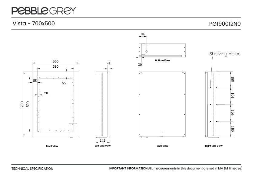 The Vista comes with 3 adjustable glass shelves. Fix the shelves onto the pre-drilled holes, or remove them to createmore space for bigger items like electric toothbrushes or shavers.