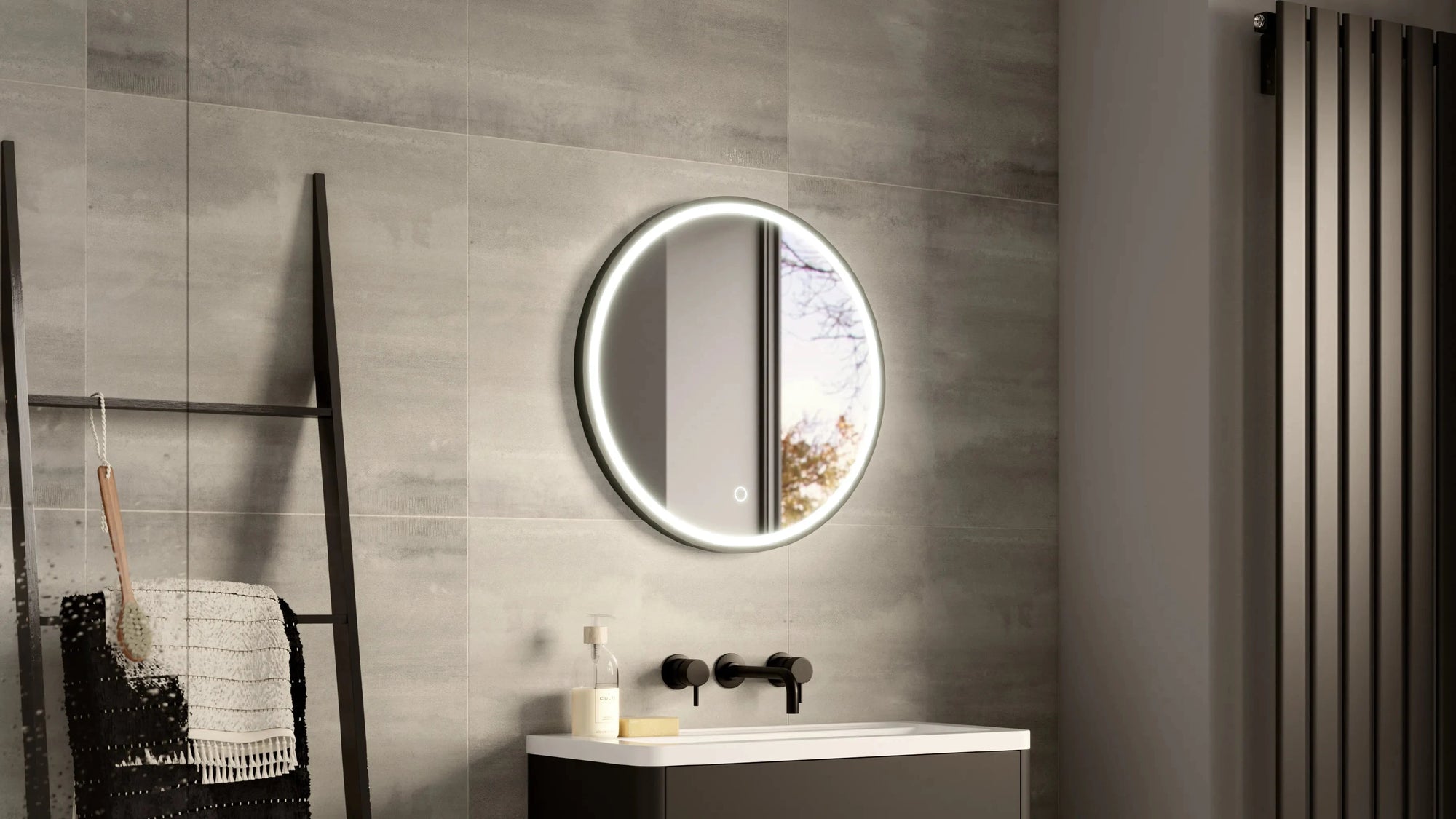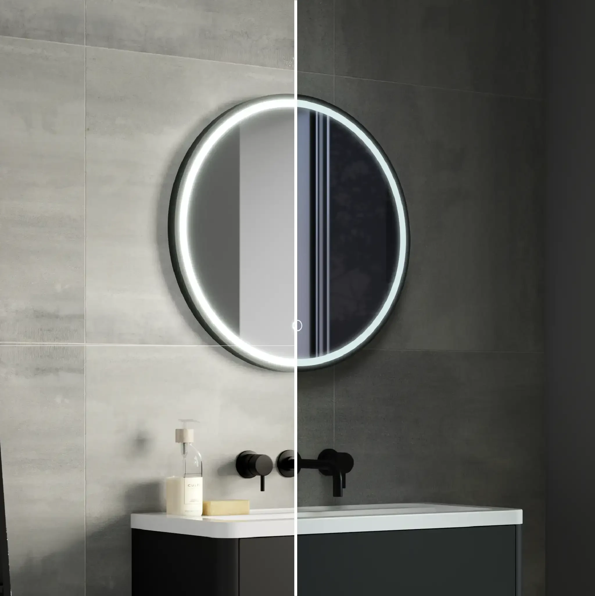 The circular Kali's colour-changing LED lights switch the temperature from cool white to warm white with a simple press of the sensor switch. The in-built demister pad gently heats to ensure a clear reflection even in steamy bathroom conditions.