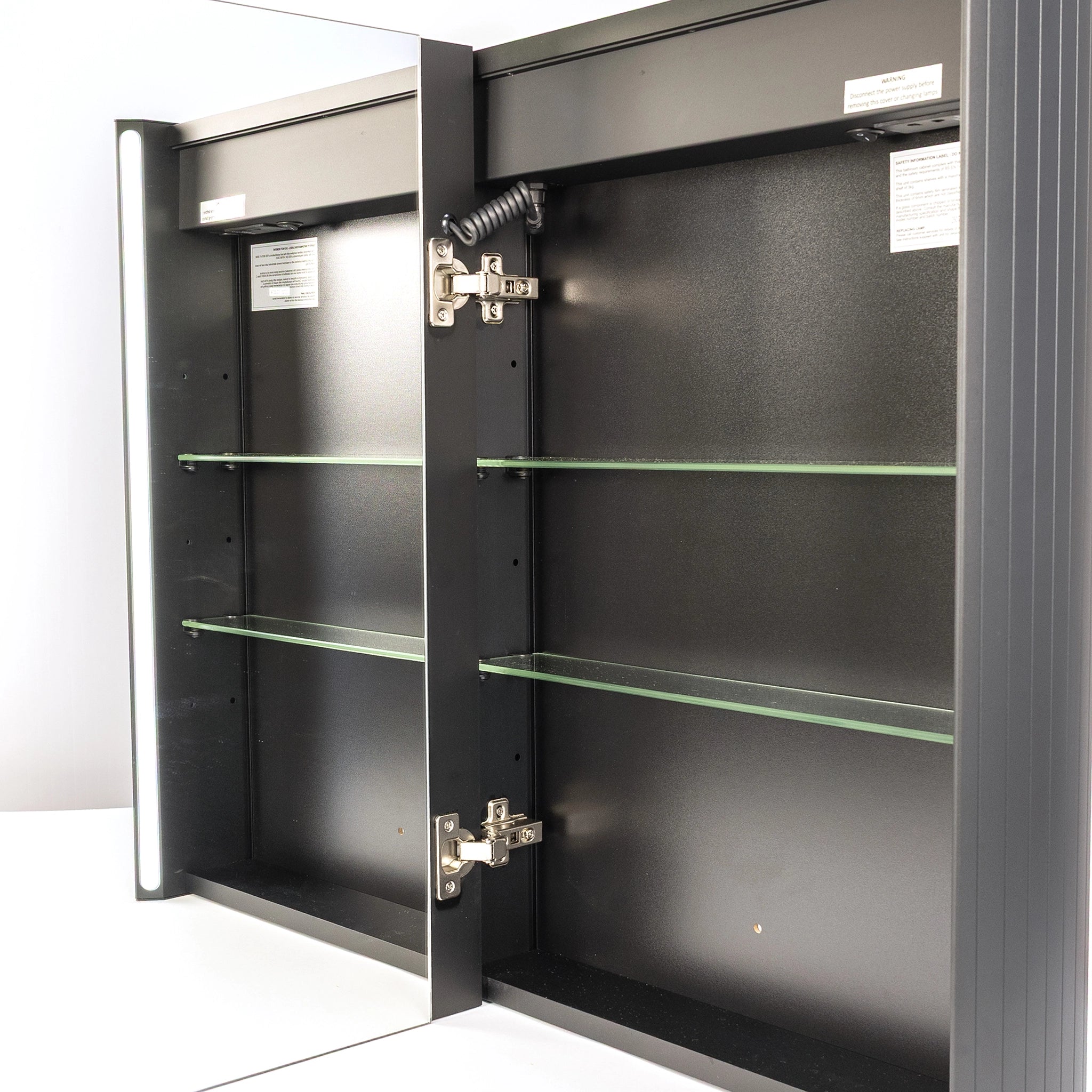 Our single-door bathroom cabinet collection also features technologies to speed up daily routines. Keep your shaver and electric toothbrush fully charged with our concealed sockets, and opt for a model with a demister to maintain a fog-free mirror while you're in the shower. Bluetooth models with speakers like the Grace enable you to transform your mirrored cabinet into a speaker to start the day with your favourite songs or podcasts.