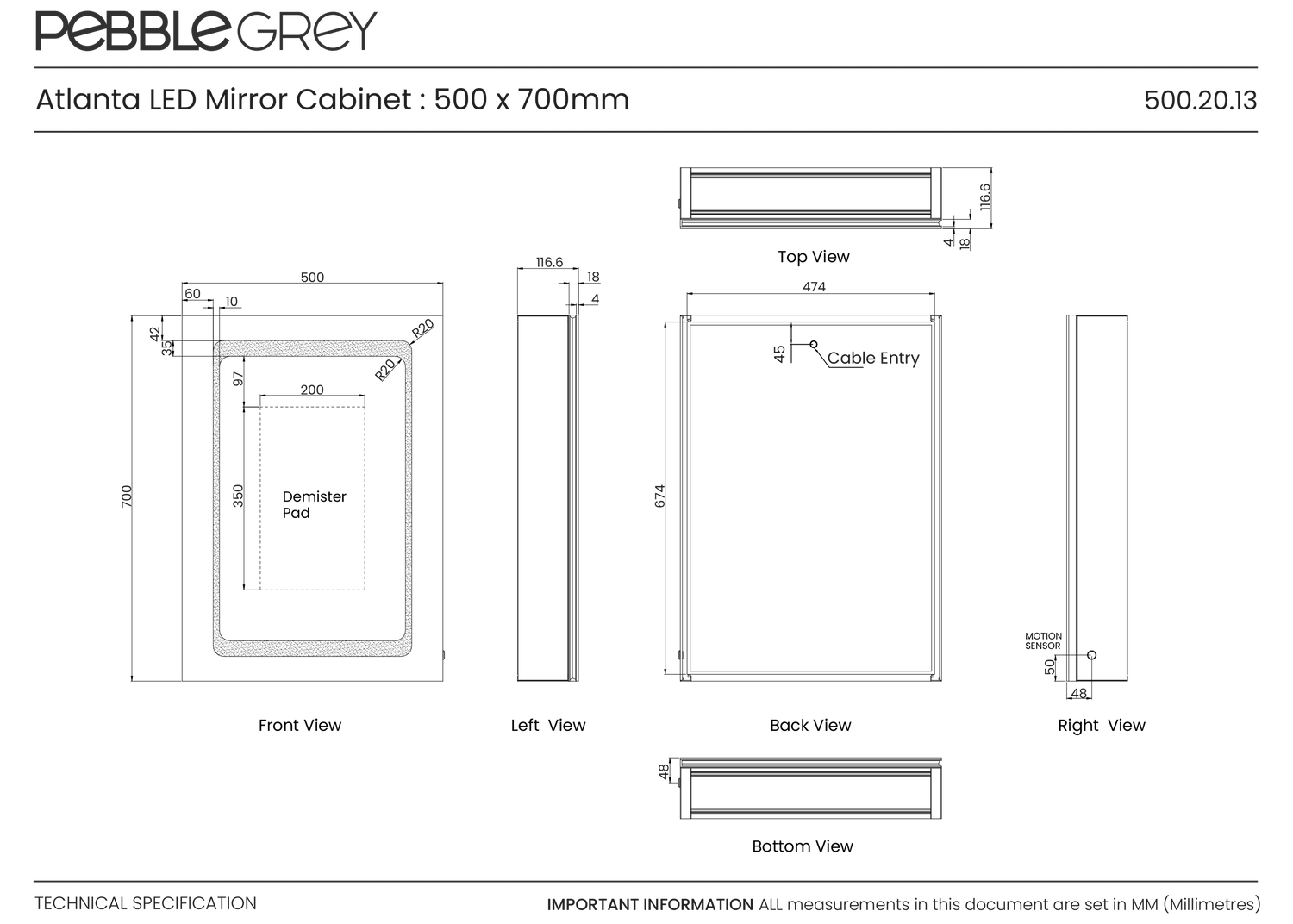 Behind the illuminated front lies practicality with two adjustable glass shelves at a generous depth of 120mm and the added convenience of soft-close hinges. While A UK standard shaver socket is located inside perfect for charging shavers and toothbrushes.