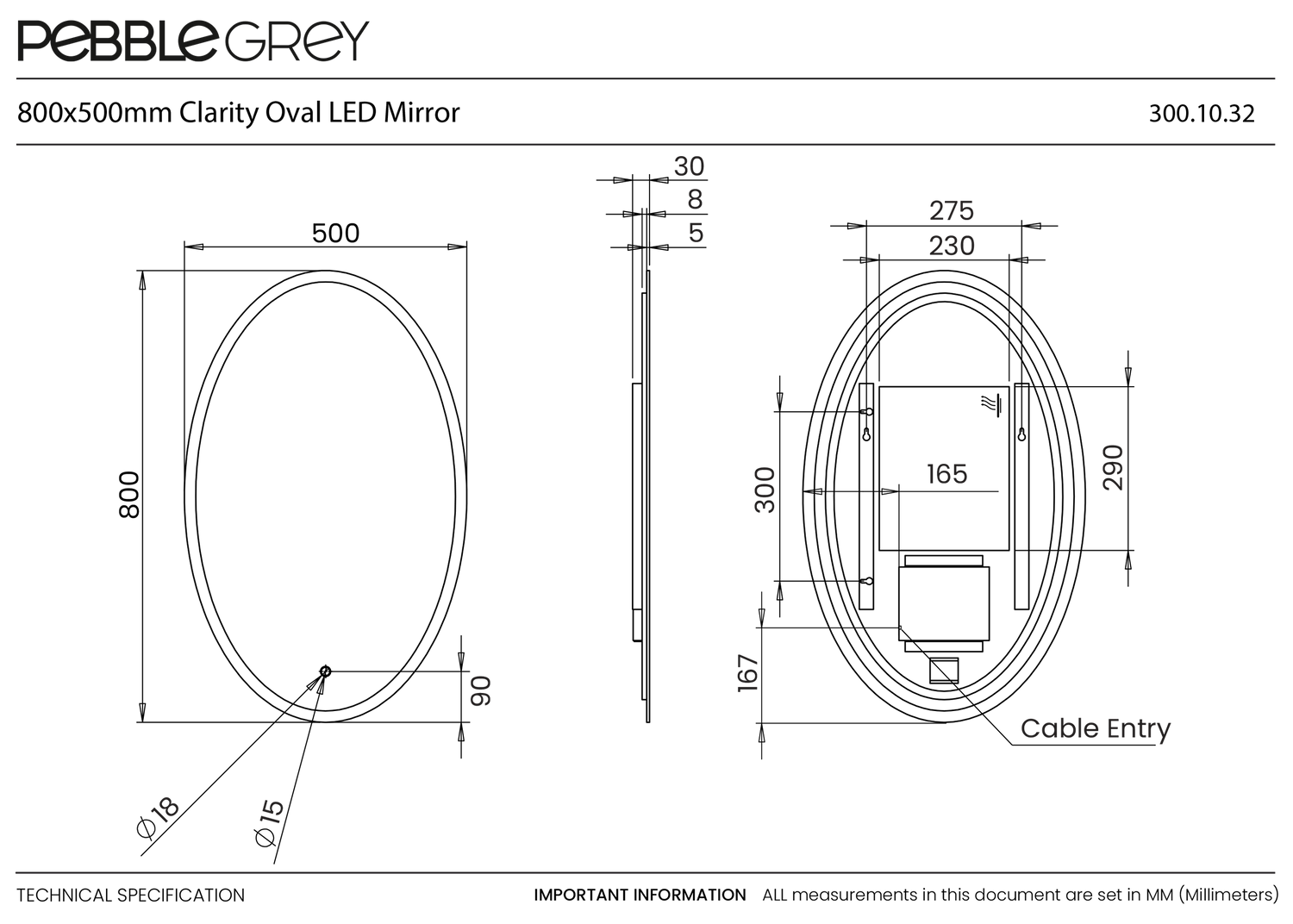 Enhance your bathroom with the stunning oval shaped, Clarity LED Illuminated Mirror. This 500x800mm round LED Mirror casts a soft, illuminating glow that creates a sense of luxury and tranquillity in your bathroom. Ensuring perfect light temperatures is the touch sensor switch that allows the Clarity to transition between warm white and cool white temperatures. A demister pad ensures steam-free reflections after a shower or bath. Create the illusion of additional light and space in your bathroom with this exquisite bathroom mirror.