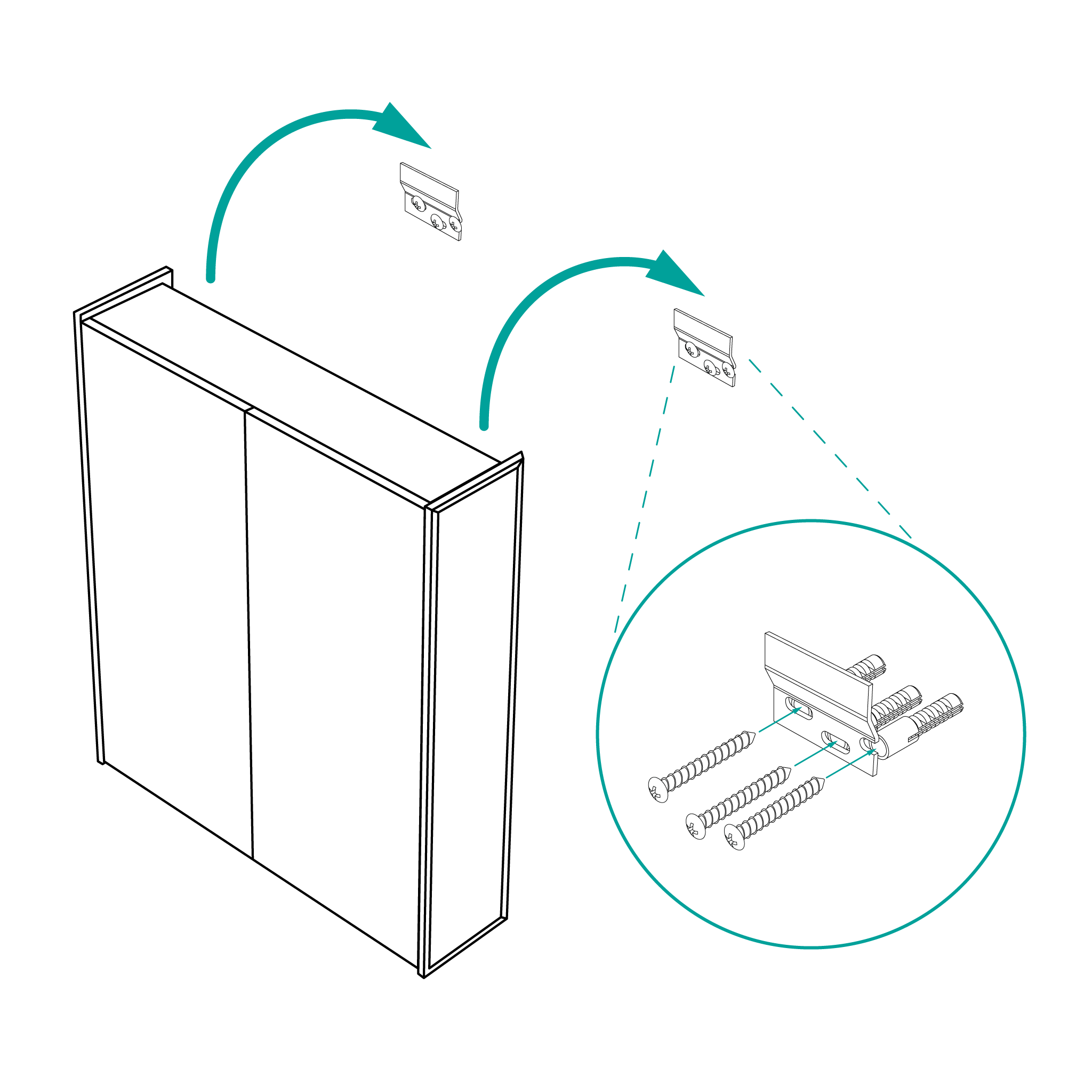 This cabinet comes with all the components to hang, but there aren't many. This cabinet uses hooks for hanging, meaning all you need to do is screw the supplied pair of hooks onto the wall, and attach the cabinet using the hooks on the back of the unit.
