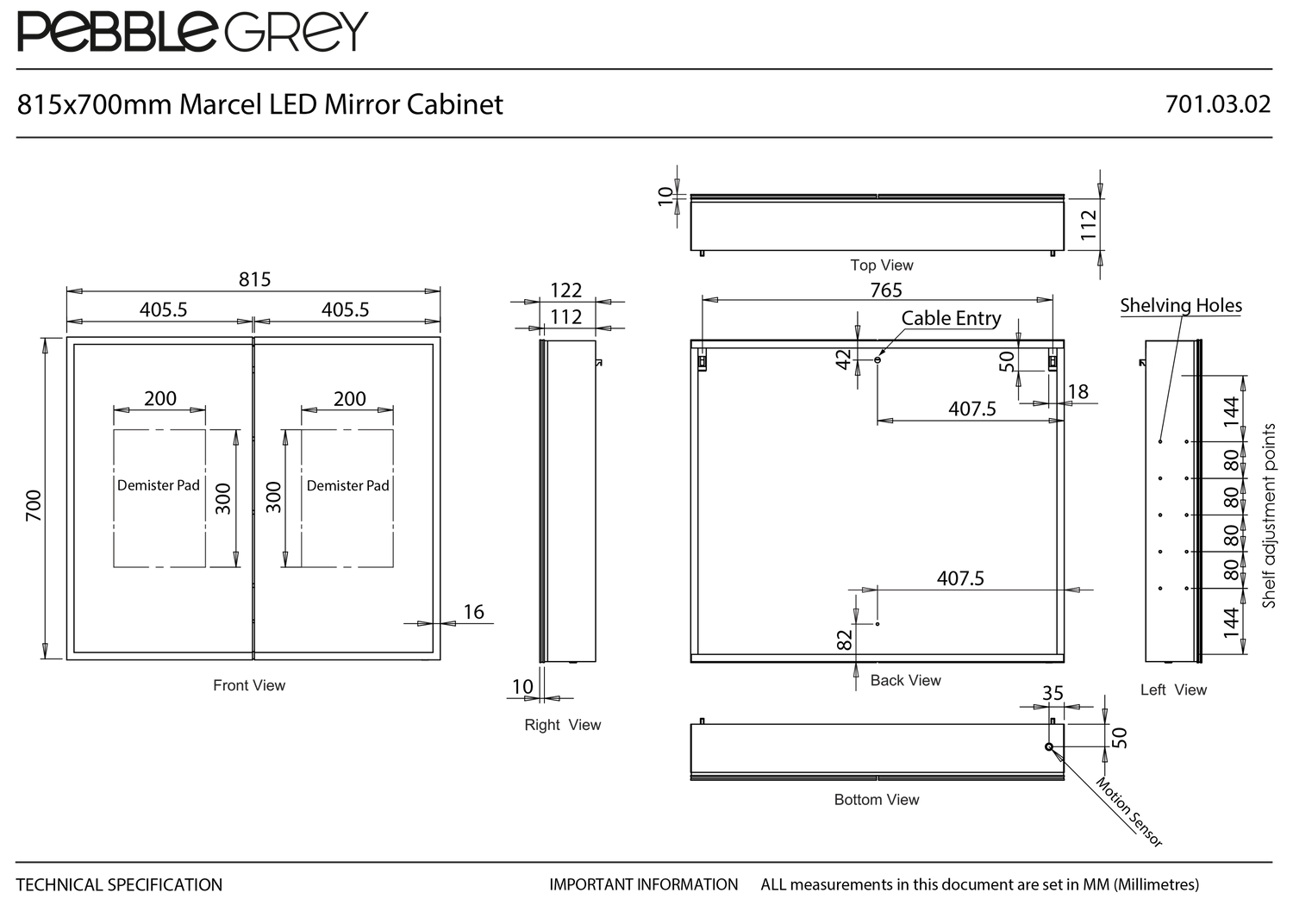The motion sensor is discreetly featured on the underside of the cabinet on the right-hand side. When the door is lit, an energy efficient demisting pad is automatically activated to keep the mirror fog-free.
